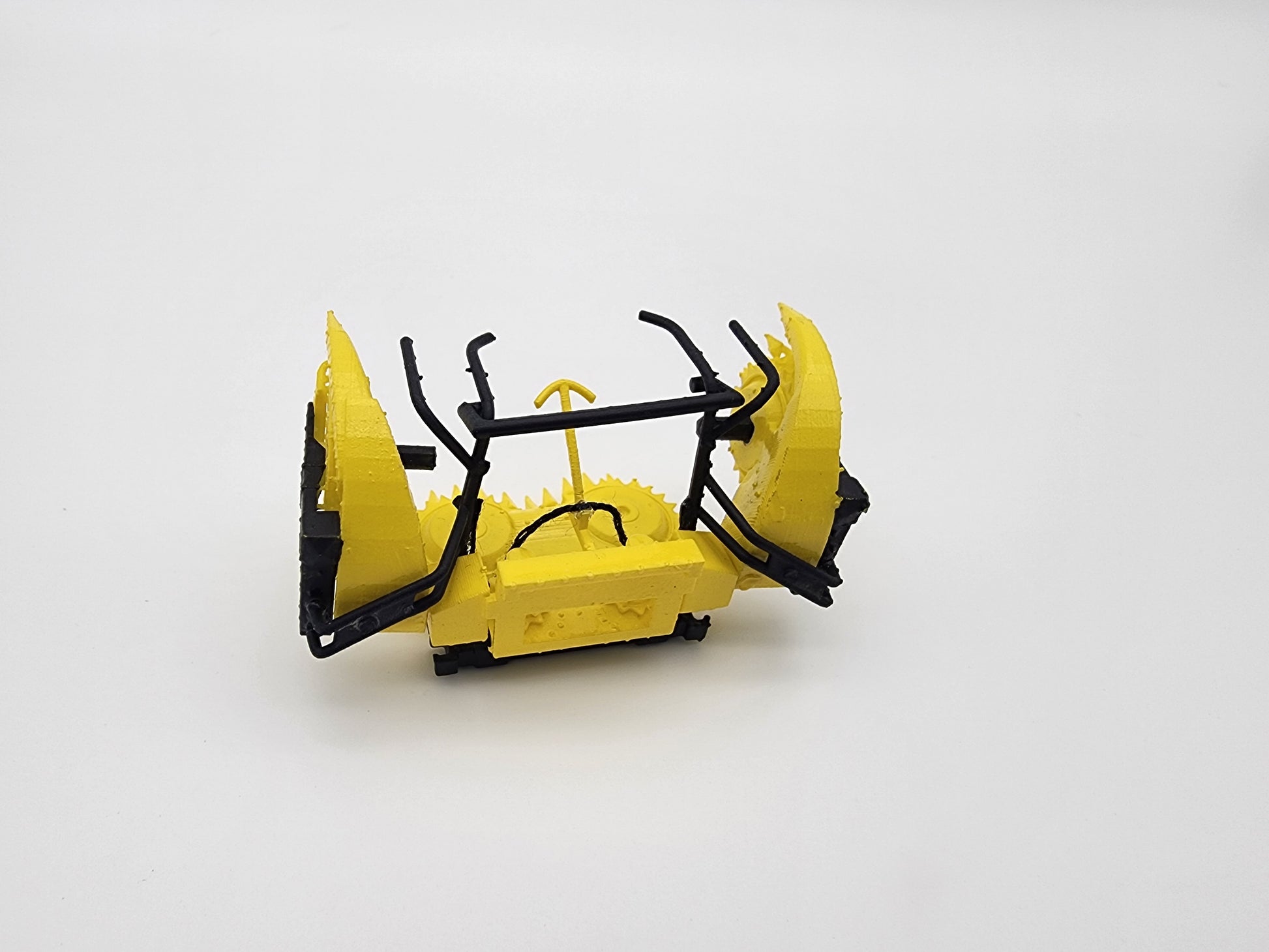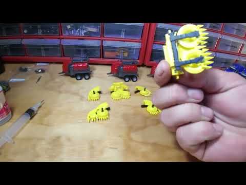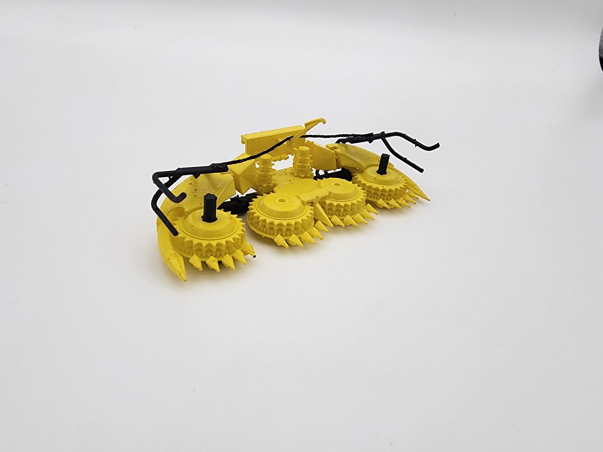 1/64 scale yellow 8row silage head designed to fit a 7series green harvester. Can be glued rigid or pinned to fold. Comes with a mounting plate to attach to the harvester.