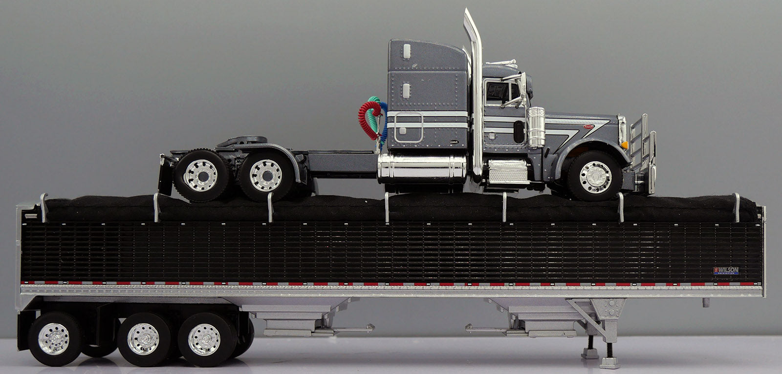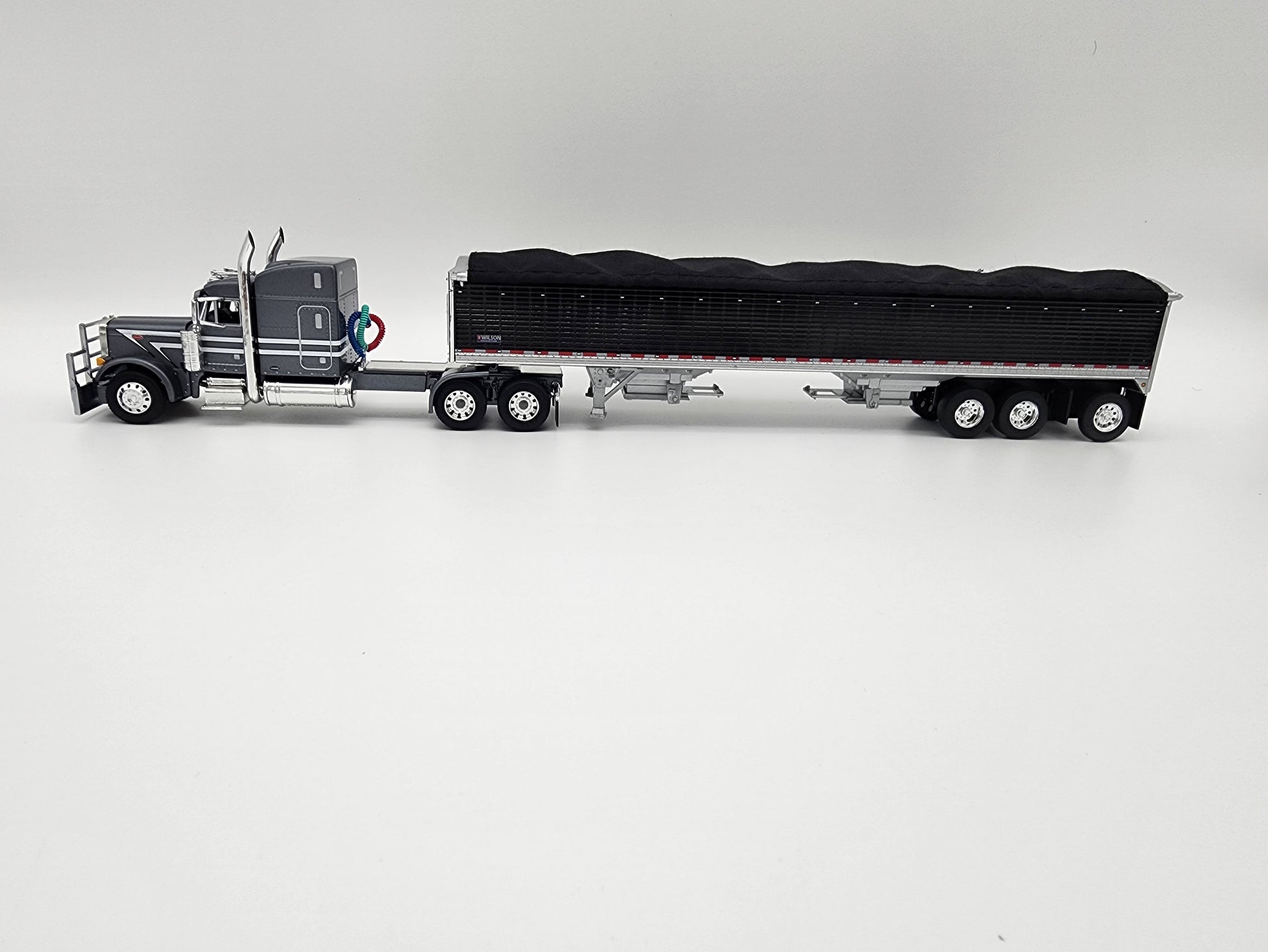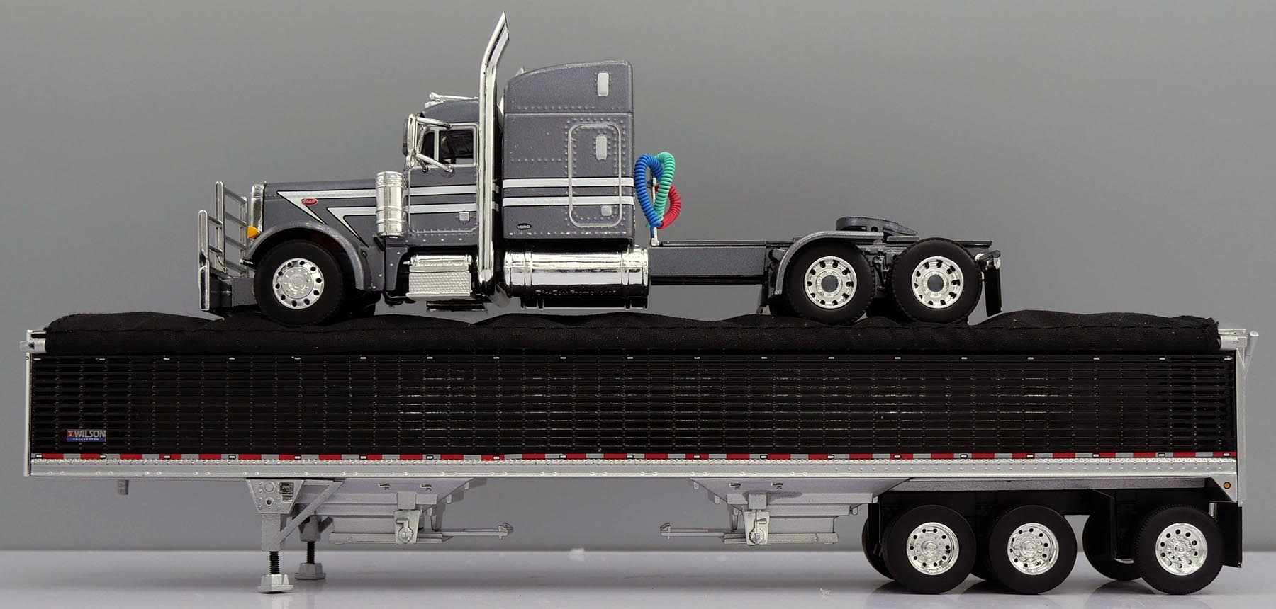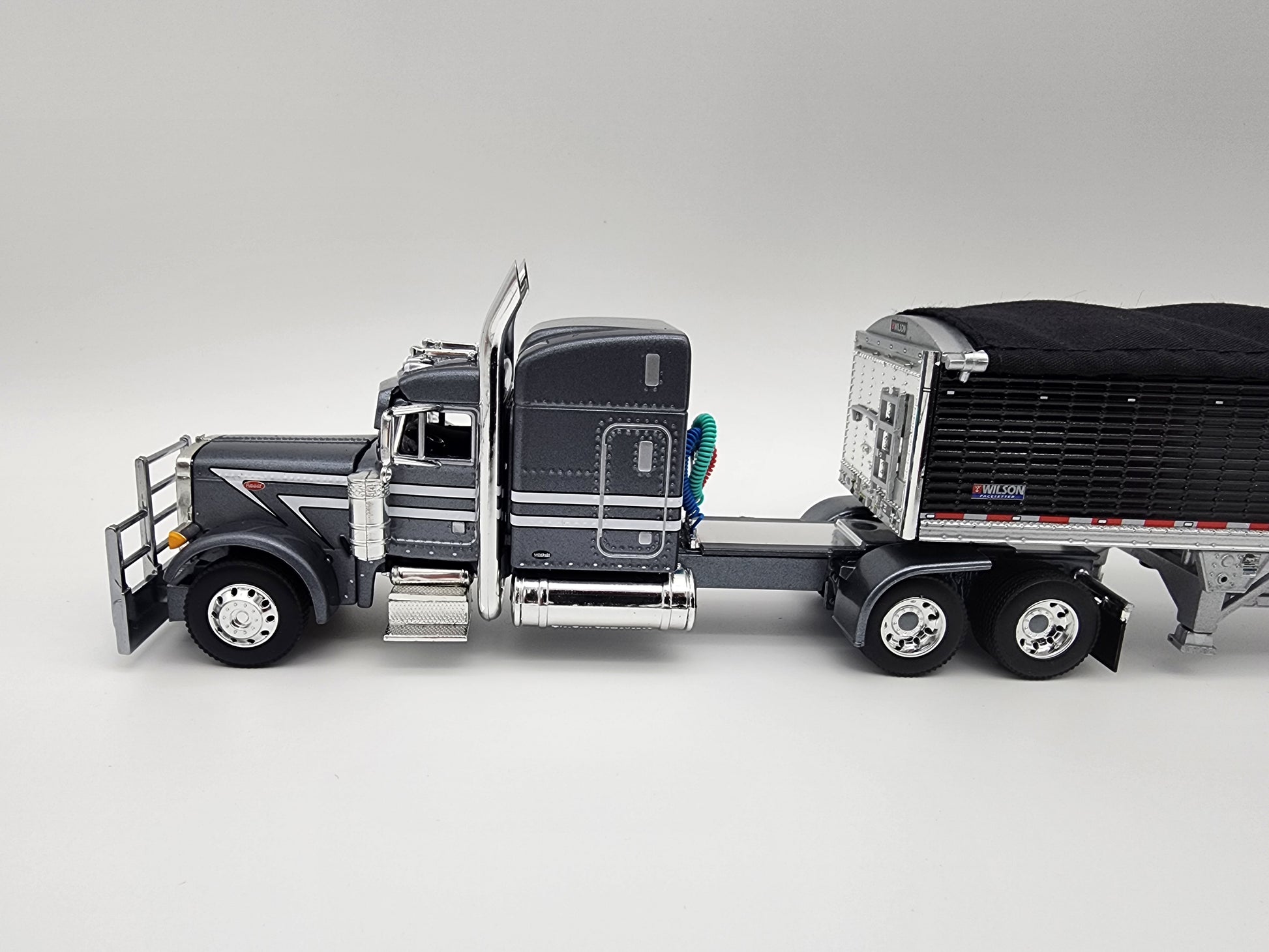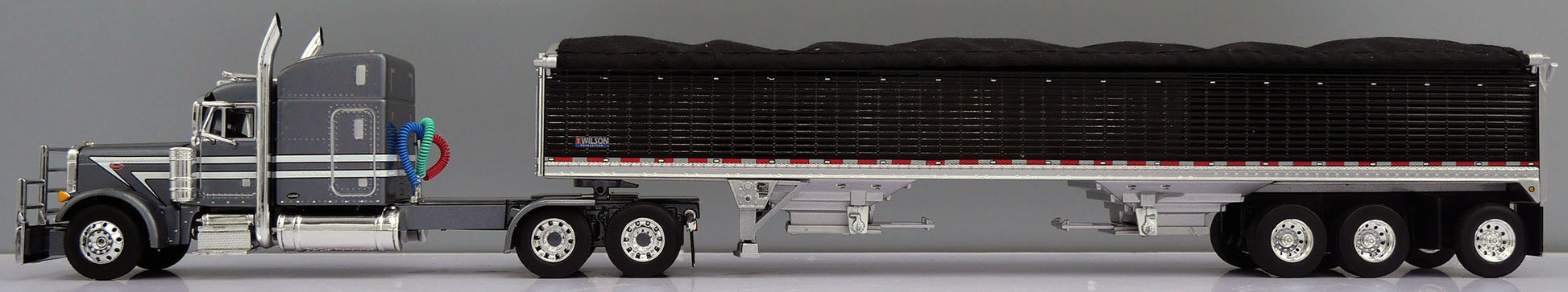 Blue Peterbilt 379 w/ Pewter Wilson Pacesetter 50' grain trailer