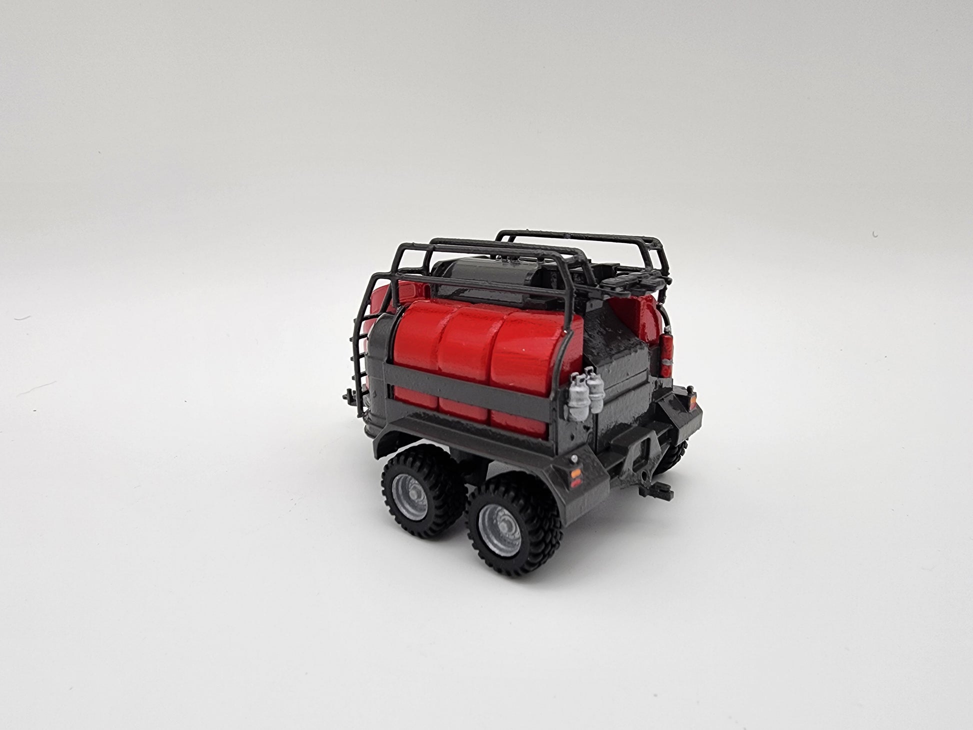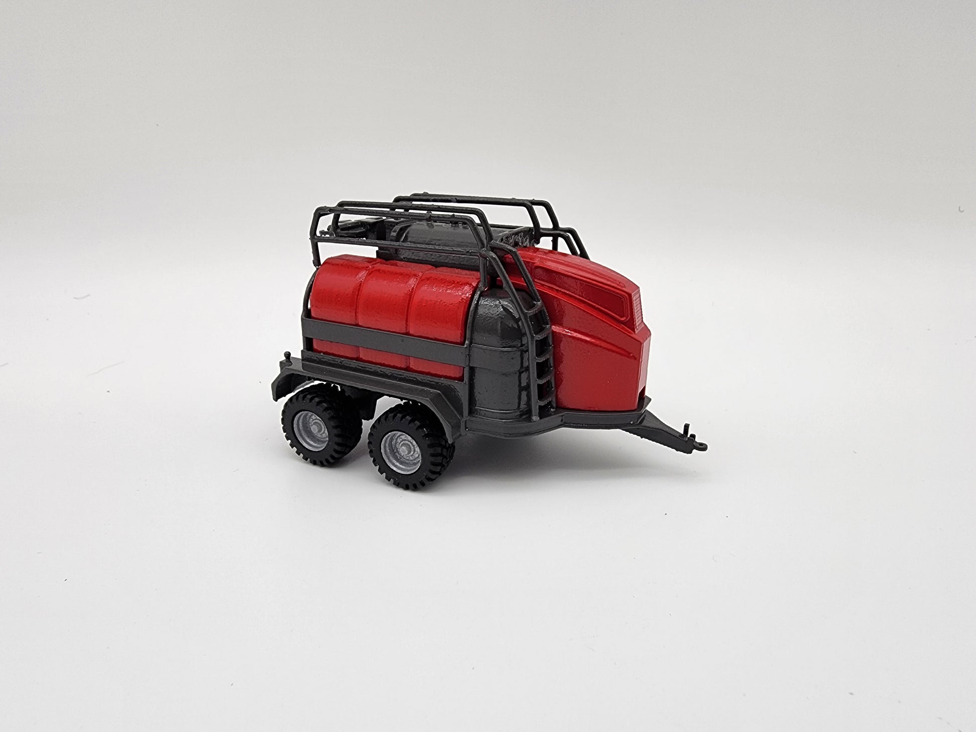 1/64 scale. Designed to steam alfalfa before baling. Goes between the tractor and the baler
